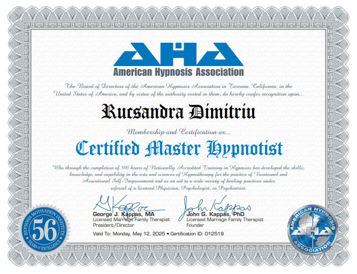 Welcome to Hypnosis Manifest, where the extraordinary meets the everyday. I am Rucsandra Dimitriu, your companion on a transformative journey of the mind and spirit. With a rich background as a certified master hypnotherapist, manifestation coach, and intuitive spiritual healer, I am passionate about guiding you towards unlocking your innate potential and manifesting your dreams.My approach is both holistic and personalized, merging ancient wisdom with modern techniques to foster profound personal growth and healing. Whether you seek to delve deep into the subconscious with hypnotherapy, harness the power of the universe through manifestation coaching, or explore the depths of your spiritual self, my goal is to empower you to live your most authentic and fulfilled life.Join me on this path of discovery, and together, let’s create a life that not only dreams but also manifests those dreams into reality.